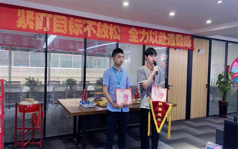 接下來,我們頒發優秀客服獎,獲獎者分別為:第一名:馬小紅;第二名:孫晨晨。肖總為優秀客服一一頒發獎項后,獲獎客服發表了獲獎感言。