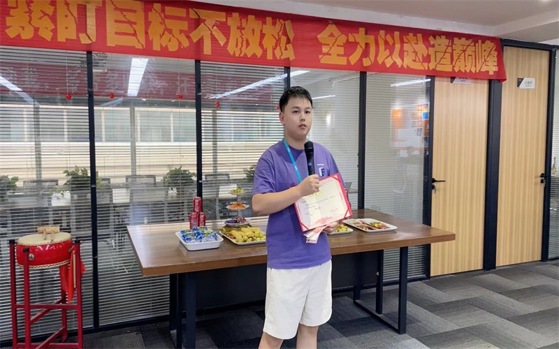 下面進入頒獎環節。經過一個月精彩的角逐,我們的冠亞軍誕生了,冠軍是我們神鋒隊的張鋮;亞軍是超越隊的王東。由肖總頒發獎項后,獲獎者發表了獲獎感言。