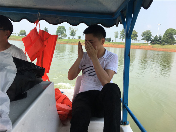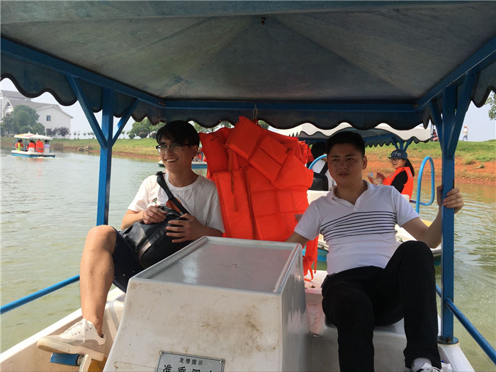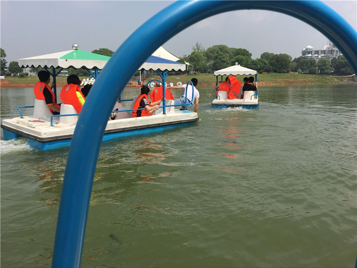 在湖面慢慢悠悠的前進,看著周邊的景色,心情大好,有的同事覺得不盡興,開始打起了水仗